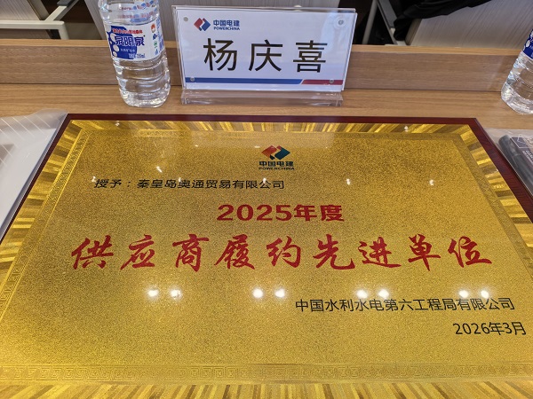 中國(guó)電建集團(tuán)中國(guó)水利水電第六工程局有限公司(以下簡(jiǎn)稱(chēng)“水電六局”)2026年度供應(yīng)鏈年會(huì)暨合作共贏推進(jìn)會(huì)在遼寧沈陽(yáng)隆重召開(kāi)。會(huì)上,秦皇島奧通貿(mào)易有限公司(以下簡(jiǎn)稱(chēng)“奧通公司”)憑借卓越的履約能力、優(yōu)質(zhì)的商業(yè)信譽(yù)和高效的服務(wù)水平,從眾多合作伙伴中脫穎而出,榮獲水電六局2025年度“供應(yīng)商履約先進(jìn)單位”稱(chēng)號(hào)。這一榮譽(yù)的取得,標(biāo)志著奧通公司在供應(yīng)鏈協(xié)同與戰(zhàn)略合作領(lǐng)域的綜合實(shí)力再次獲得行業(yè)龍頭企業(yè)的充分肯定。